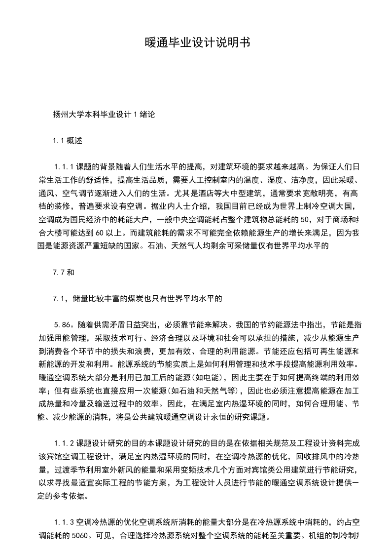 1.1.1课题的背景随着人们生活水平的提高,对建筑环境的要求越来越高。为保证人们日常生活工作的舒适性,提高生活品质,需要人工控制室内的温度、湿度、洁净度,因此采暖、通风、空气调节逐渐进入人们的生活。尤其是酒店等大中型建筑,通常要求宽敞明亮,有高档的装修,普遍要求设有空调。据业内人士介绍,我国目前已经成为世界上制冷空调大国,空调成为国民经济中的耗能大户,一般中央空调能耗占整个建筑物总能耗的50,对于商场和综合大楼可能达到60以上。而建筑能耗的需求不可能完全依赖能源生产的增长来满足,因为我国是能源资源严重短缺的国家。石油、天然气人均剩余可采储量仅有世界平均水平的