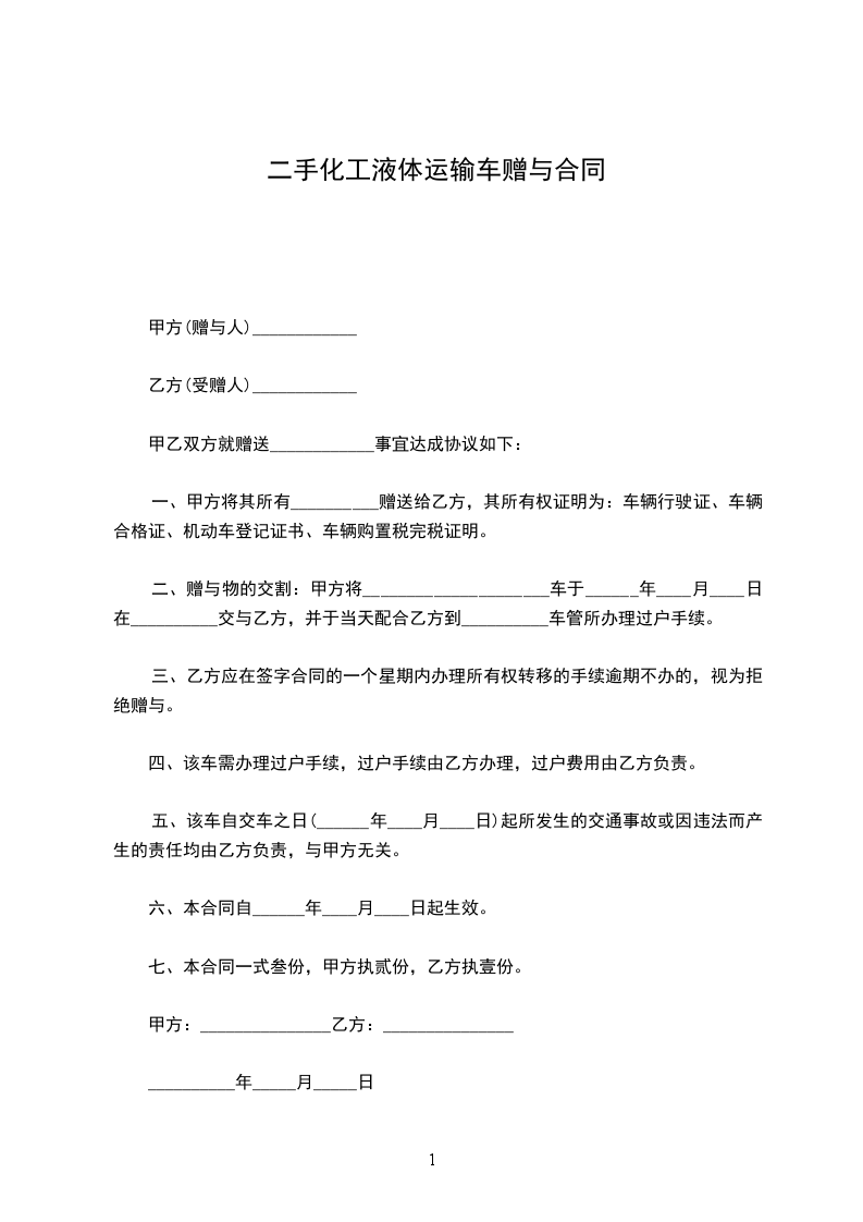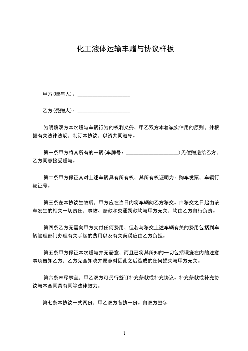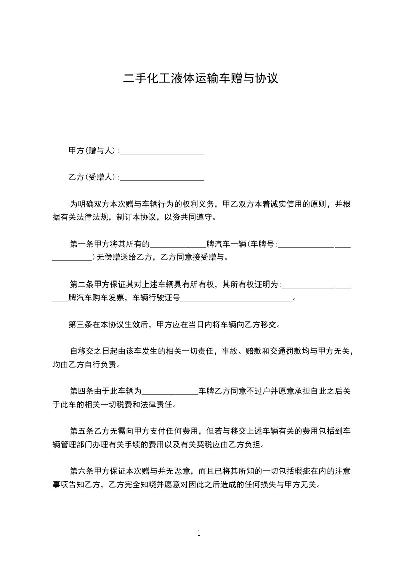 第一条甲方将其所有的______________牌汽车一辆(车牌号:____________________________)无偿赠送给乙方,乙方同意接受赠与。