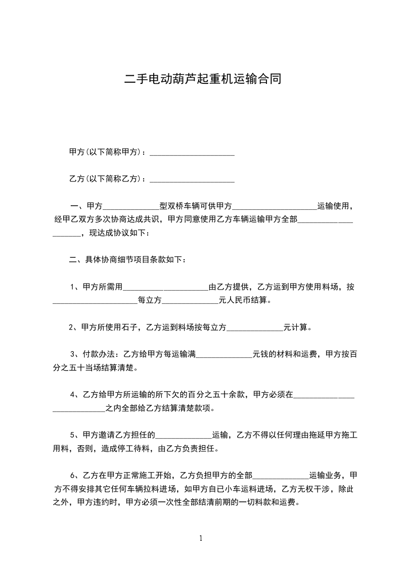 电动葫芦起重机生产合同