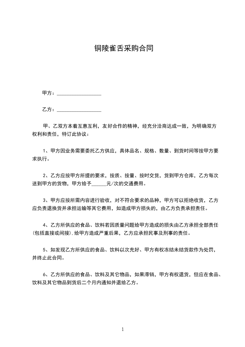 铜陵野雀舌销售合同