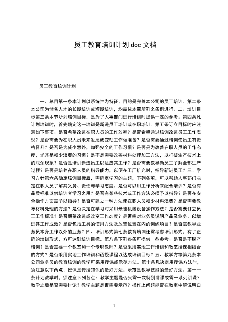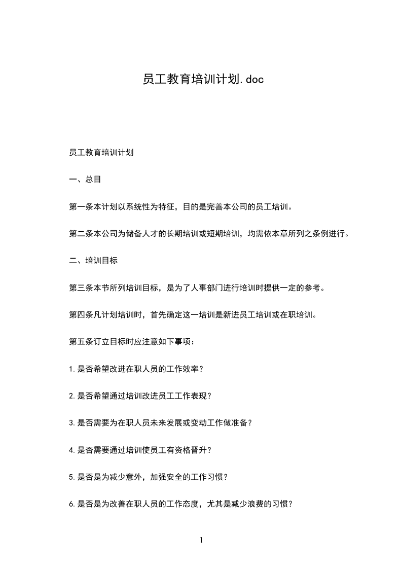 第一条本计划以系统性为特征,目的是完善本公司的员工培训。