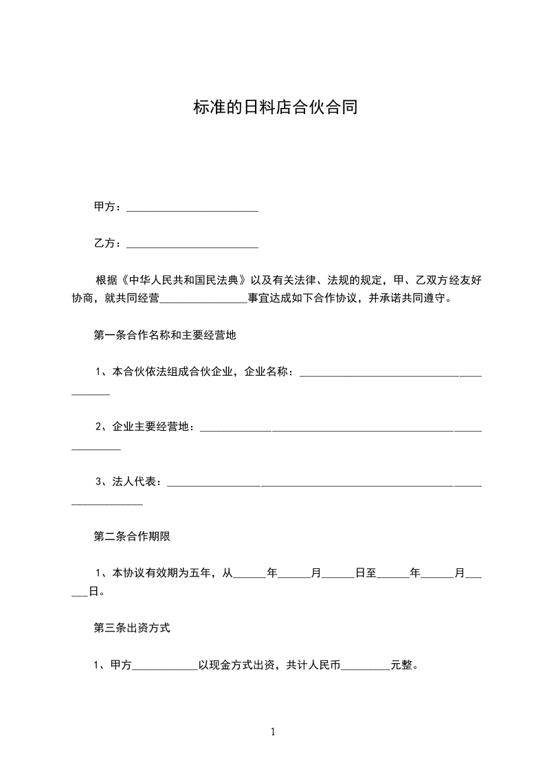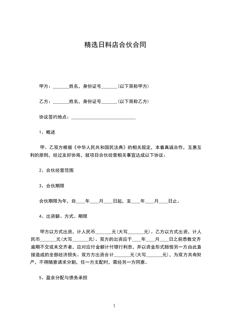 合伙人本着平等、互利的原则自愿订立如下合伙协议: