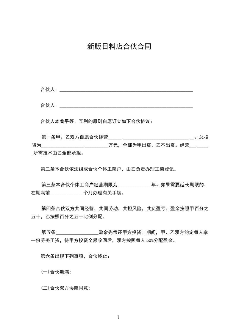 第一条甲、乙双方自愿合伙经营____________________________________。总投资为____________________________万元,全部为甲出资,乙不出资。经营_________所需技术由乙全部承担。