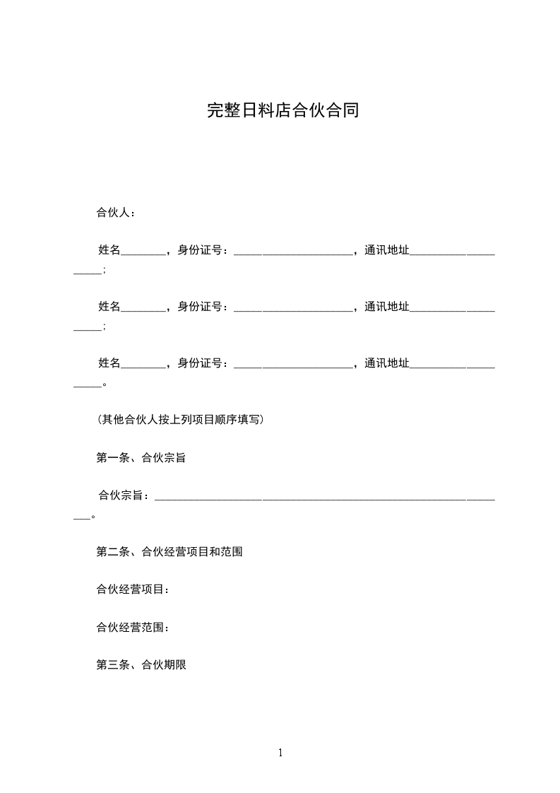 (一)合伙企业的名称:_______________。