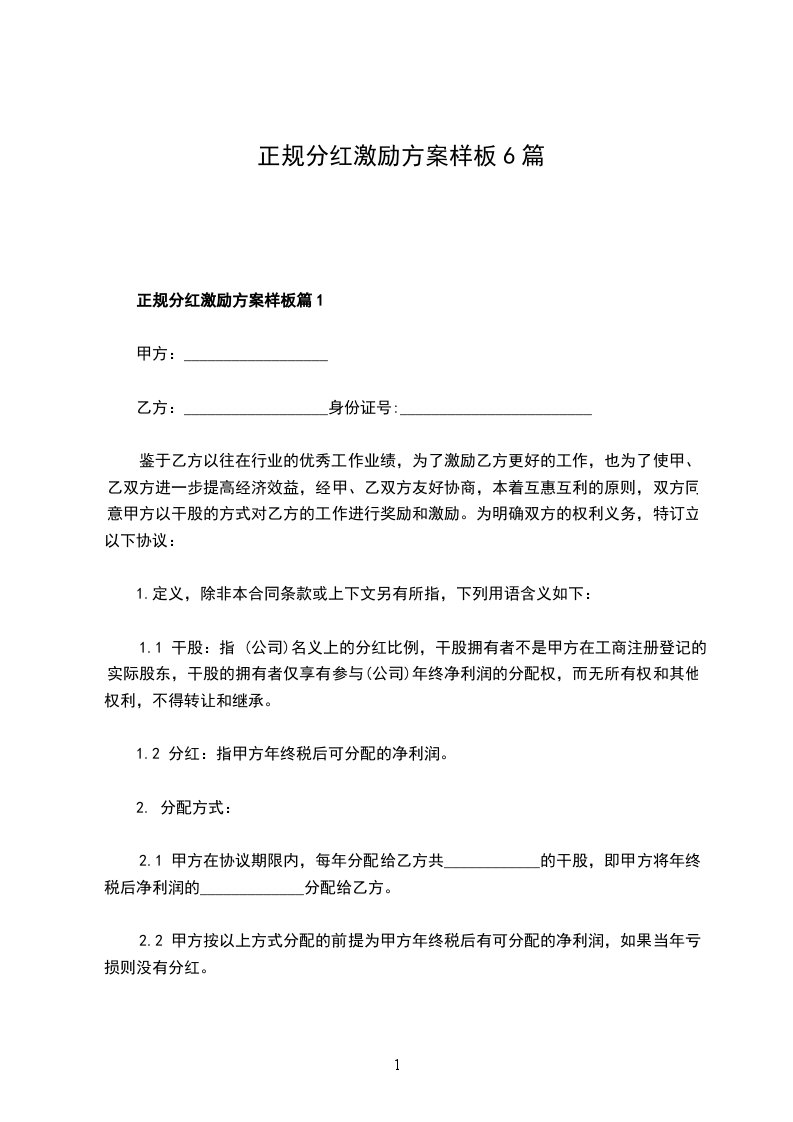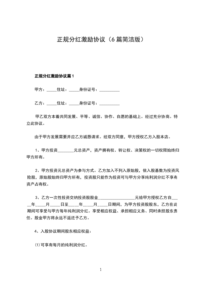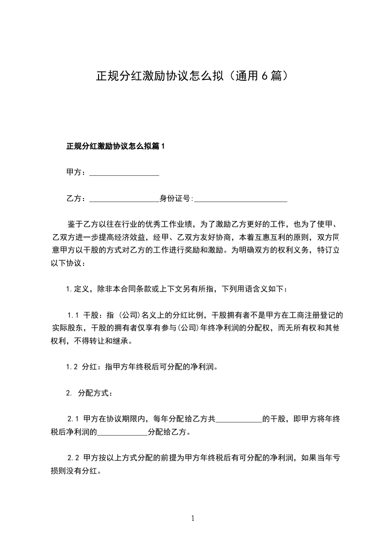 正规分红激励协议怎么拟篇1