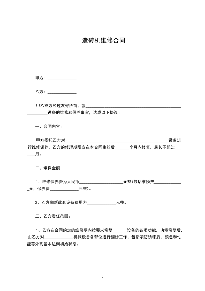 依据《中华人民共和国民法典》及相关法律规定,甲乙双方经友好协商,就_____________________维护保养事宜达成一致,同意签订本合同按双方的约定履行。
