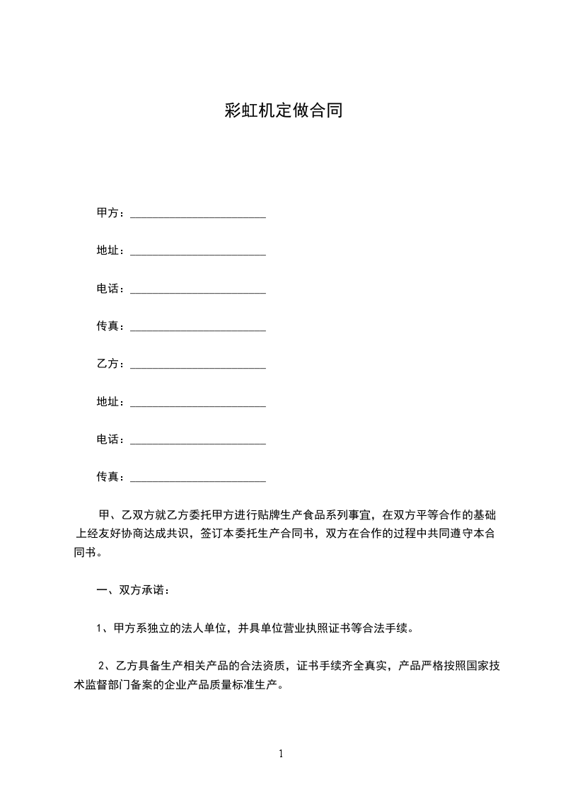 一、乙双方根据《中华人民共和国民法典》及相关法律法规规定,双方就乙方为甲方________________________________立本合同,以资共同遵照执行。