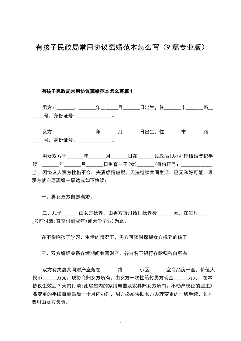 有孩子民政局常用协议离婚范本怎么写篇9