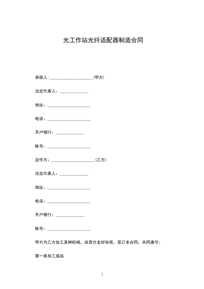 光工作站光纤适配器生产合同
