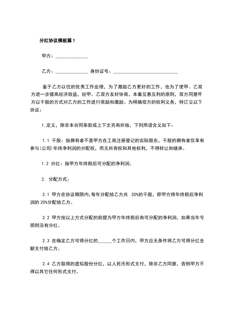 根据__公司股东大会的一致通过,先将___公司营业利润分红事项作如下协议,全体股东以兹遵守: