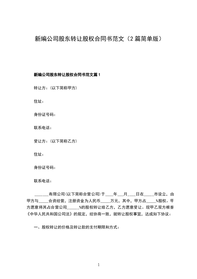_______有限公司(以下简称合营公司)于____年___月____日在_____市设立,由甲方与_____合资经营,注册资金为人民币_____万元,其中,甲方占_____%股权。甲方愿意将其占合营公司______%的股权转让给乙方,乙方愿意受让。现甲乙双方根据《中华人民共和国公司法》的规定,经协商一致,就转让股权事宜,达成如下协议: