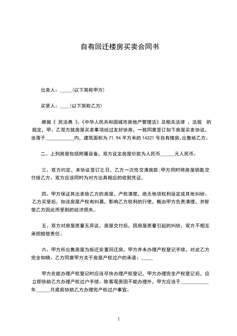 一、甲方自愿将下列房屋卖给乙方所有,并已收取乙方购房定金人民币______(大写)。