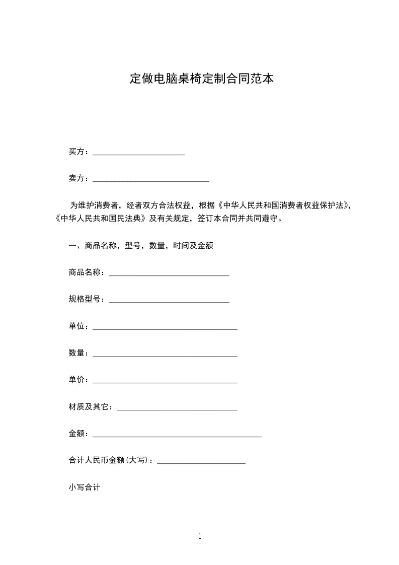 定做电脑桌椅定制合同范本