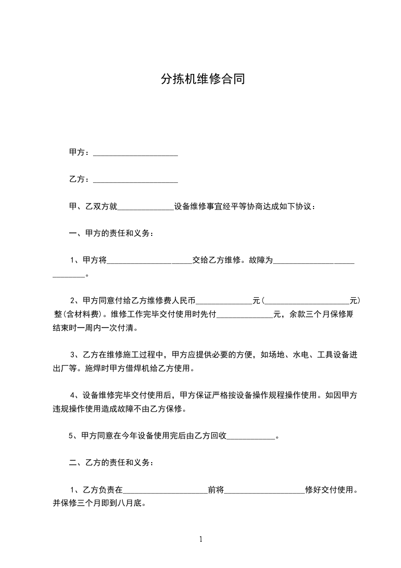 甲、乙双方就______________设备维修事宜经平等协商达成如下协议:
