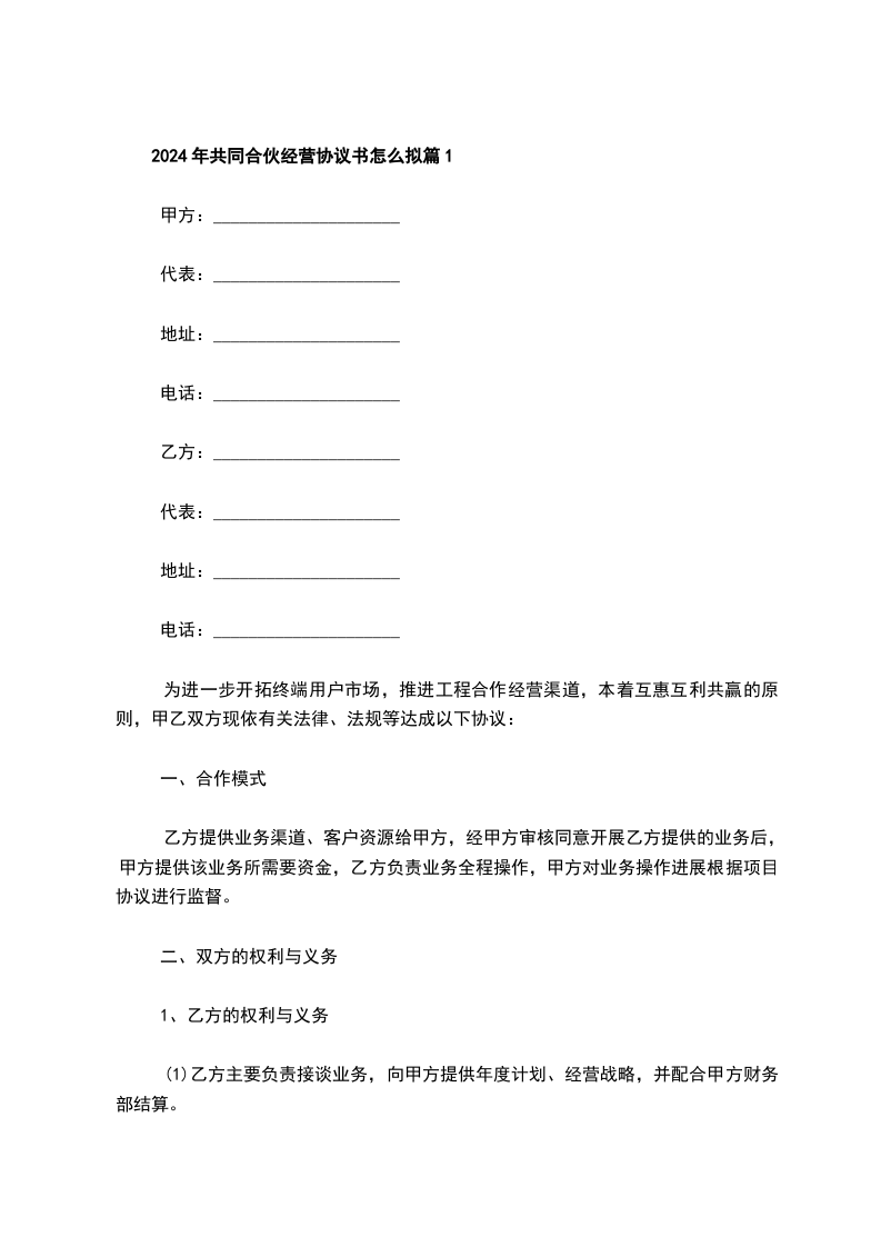 甲、乙双方经充分协商,在平等自愿的基础上就合伙出资运营____________________________事宜达成如下协议: