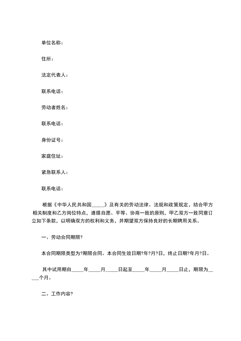 根据《中华人民共和国_____》及有关的劳动法律、法规和政策规定,结合甲方相关制度和乙方岗位特点,遵循自愿、平等、协商一致的原则,甲乙双方一致同意订立如下条款,以明确双方的权利和义务,并期望双方保持良好的长期聘用关系。