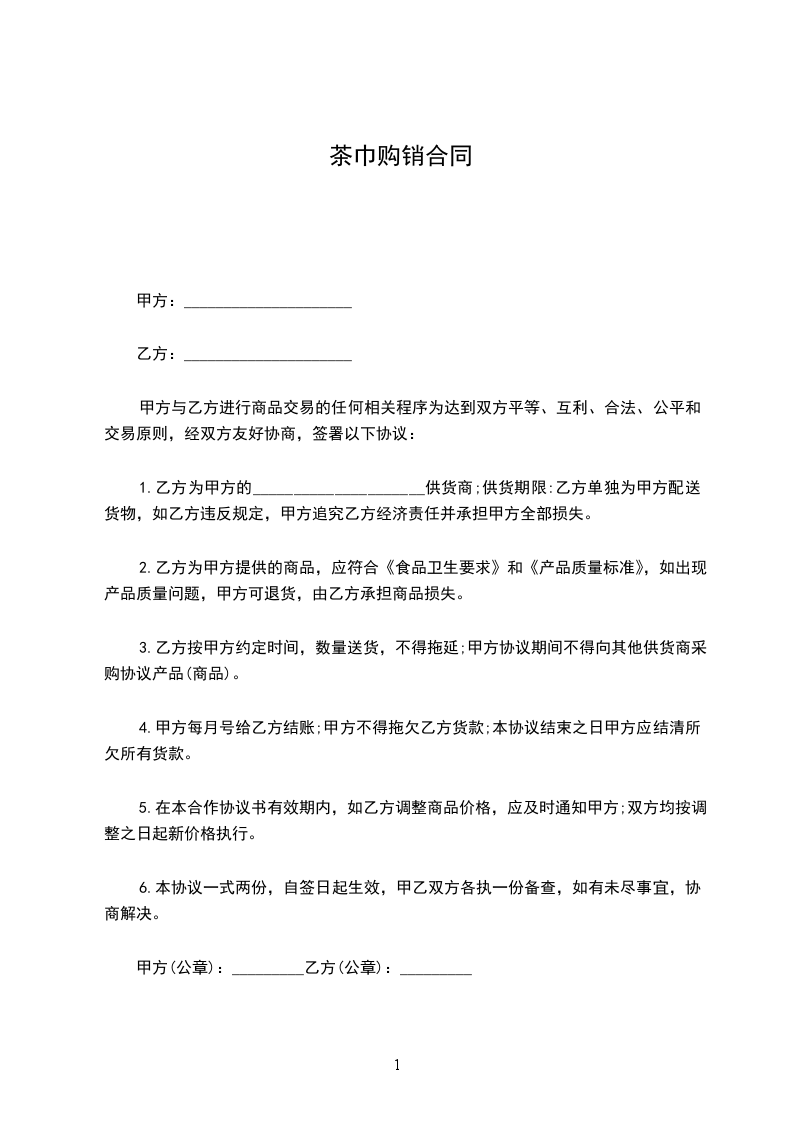 甲方与乙方进行商品交易的任何相关程序为达到双方平等、互利、合法、公平和交易原则,经双方友好协商,签署以下协议: