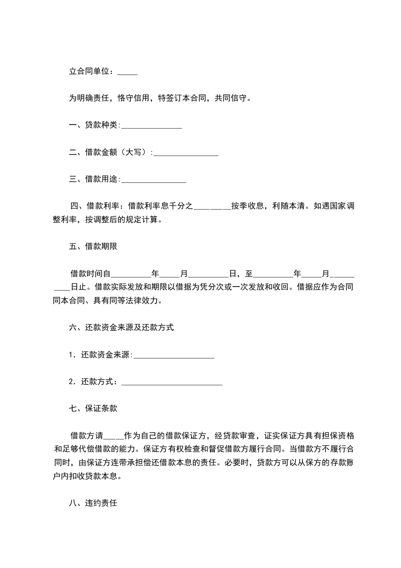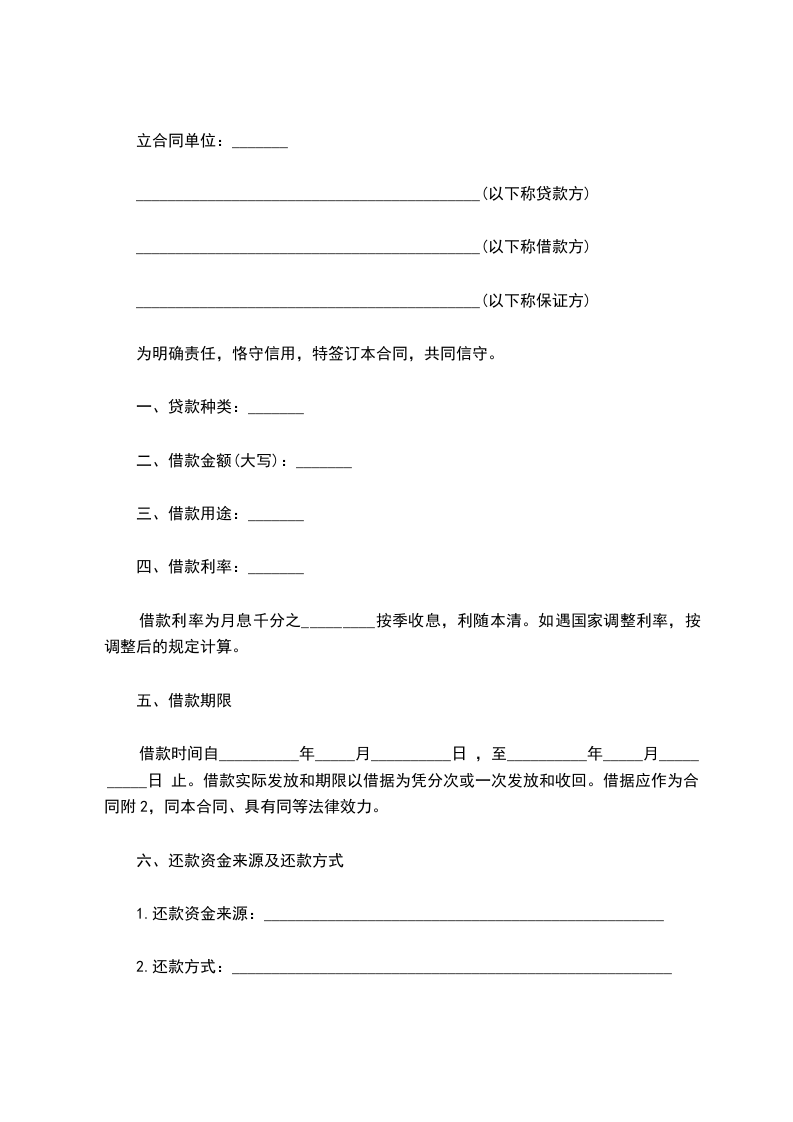 5.借款到期,甲方如不能按期偿还,由担保单位代为偿还。担保单位在收到乙方还款通知一个月后仍未归还,乙方有权从甲方(或担保方)的各项投资和存款户中扣收,或变卖甲方抵押的财产归还其借款。