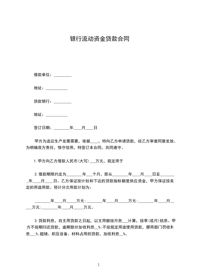 3.贷款利息,自支用贷款之日起,以支用额按月息___计算,按季(或月)结息。甲方不按期归还贷款,逾期部分加收利息__%;不按规定用途使用贷款,挪用部门罚收利息___%;超储、积压设备、材料占用的贷款,加收利息__%。