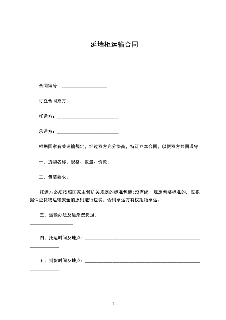 延墙柜运输合同