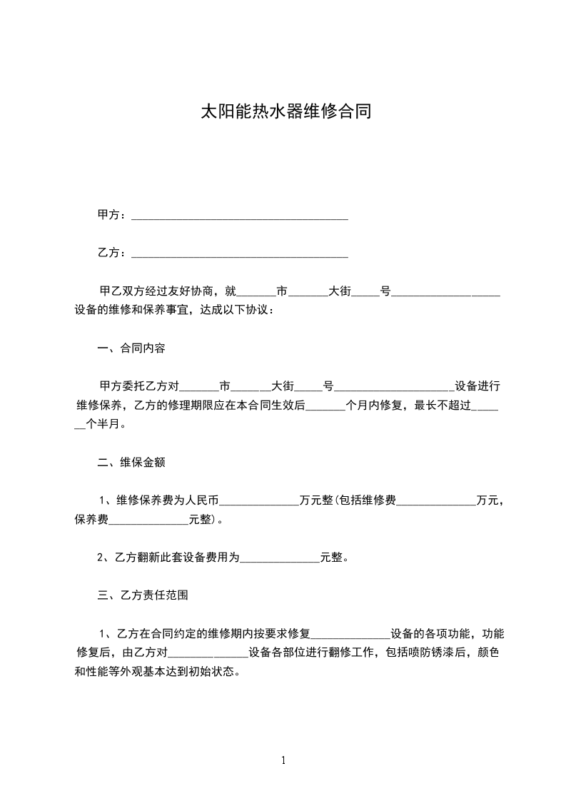 甲方委托乙方对_______市_______大街_____号_____________________设备进行维修保养,乙方的修理期限应在本合同生效后_______个月内修复,最长不超过_______个半月。