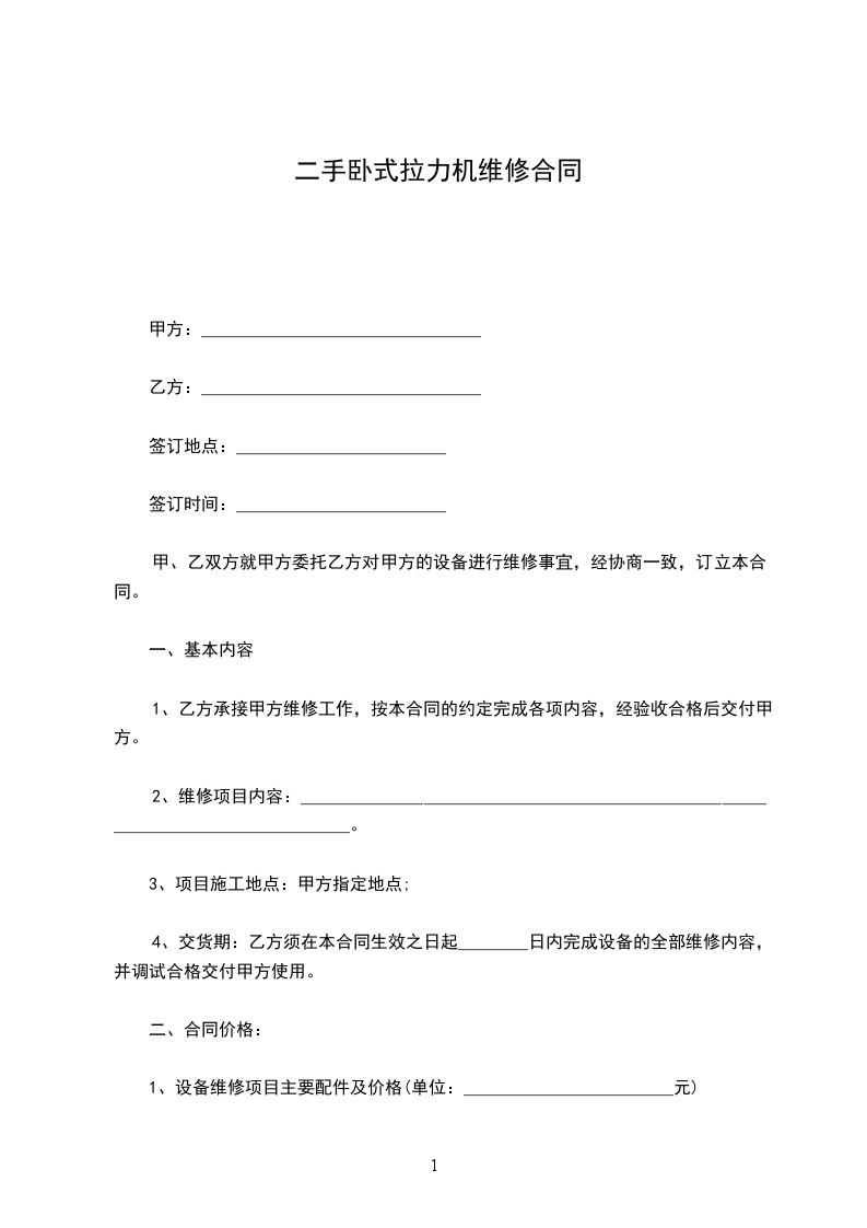 4、交货期:乙方须在本合同生效之日起________日内完成设备的全部维修内容,并调试合格交付甲方使用。