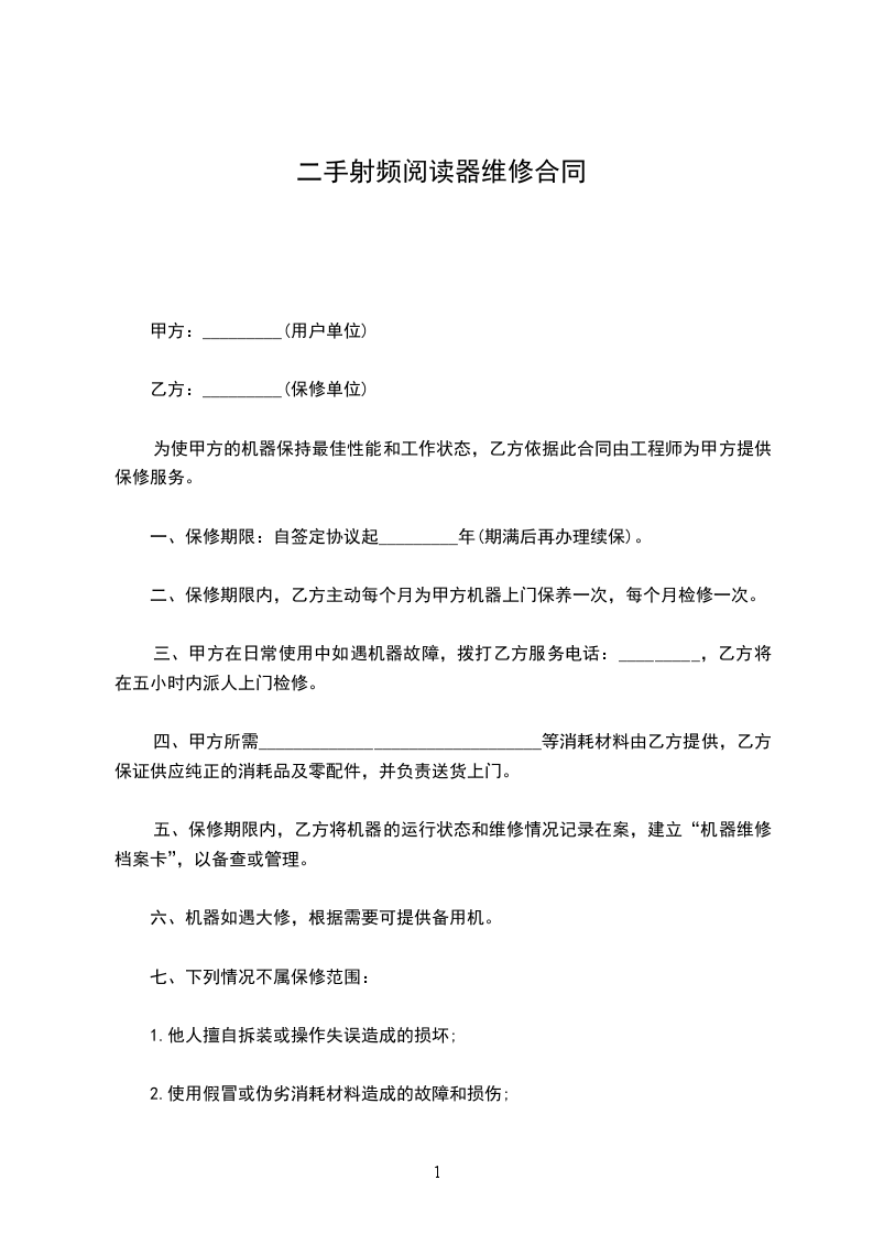 二手射频阅读器维修合同
