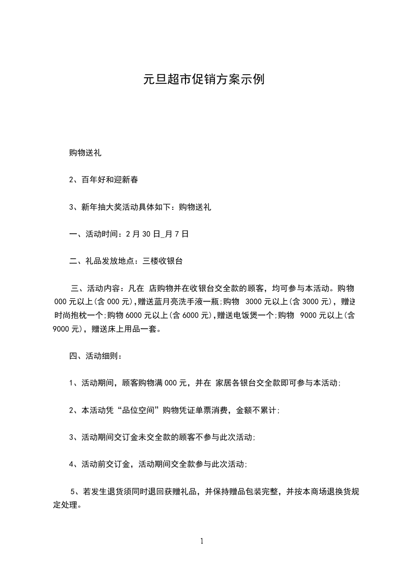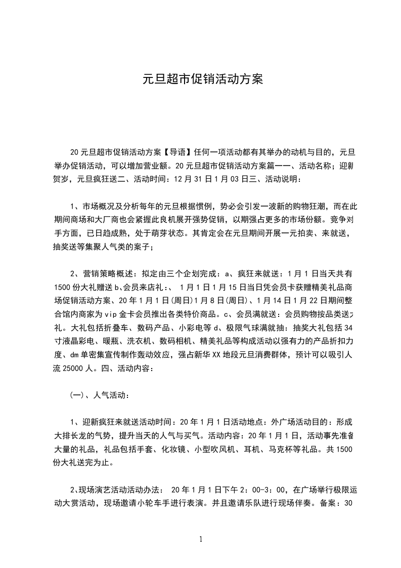 20元旦超市促销活动方案【导语】任何一项活动都有其举办的动机与目的,元旦举办促销活动,可以增加营业额。20元旦超市促销活动方案篇一一、活动名称;迎新贺岁,元旦疯狂送二、活动时间:12月31日1月03日三、活动说明: