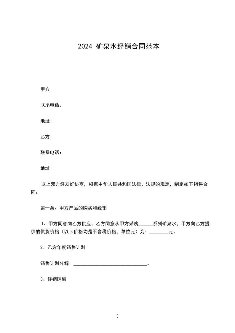 1、甲方同意向乙方供应、乙方同意从甲方采购______系列矿泉水,甲方向乙方提供的供货价格(以下价格均是不含税价格,单位元)为:________元。