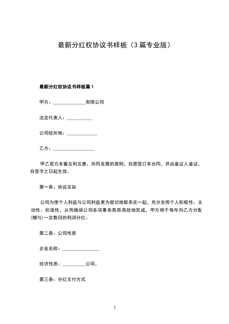 1.2分红:____________有限公司年终按照公司章程规定的可分配利润;
