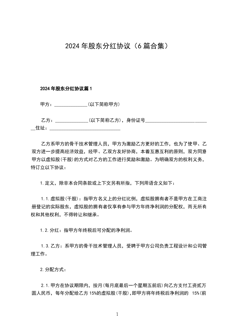 2024年股东分红协议篇1