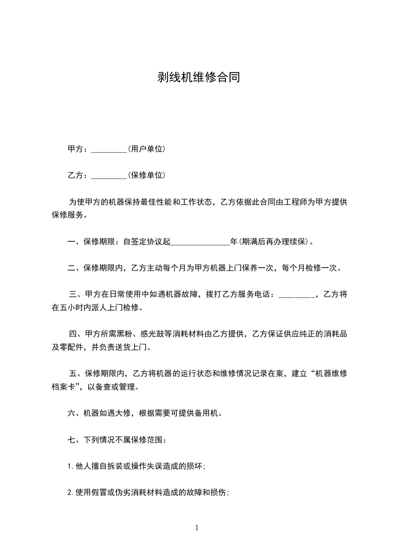 三、甲方在日常使用中如遇机器故障,拨打乙方服务电话:_________,乙方将在五小时内派人上门检修。