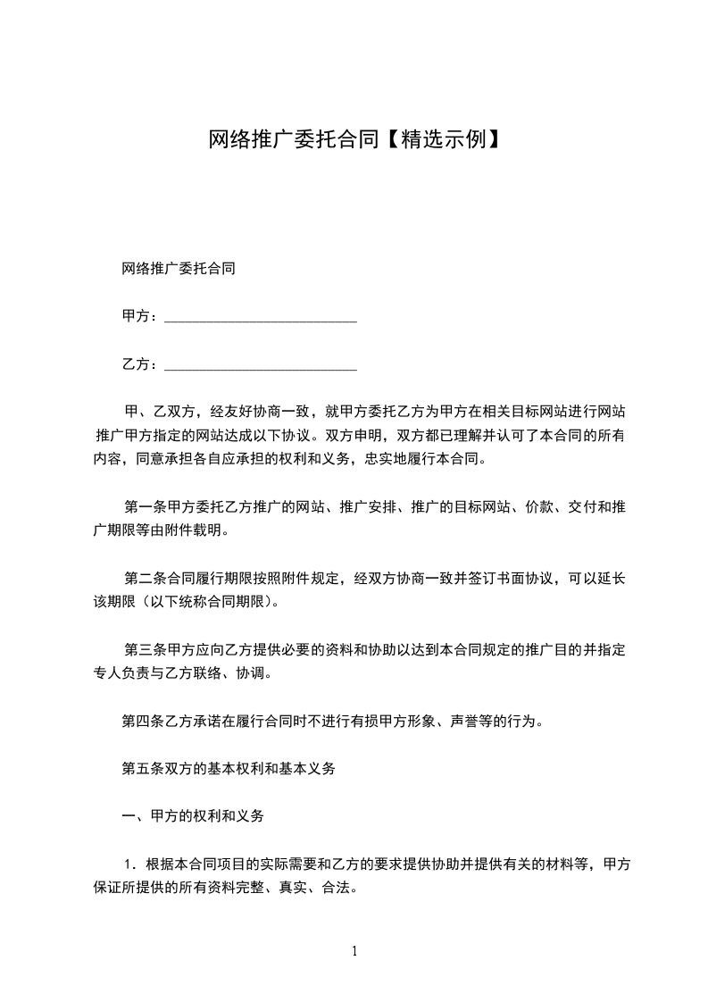 甲、乙双方,经友好协商一致,就甲方委托乙方为甲方在相关目标网站进行网站推广甲方指定的网站达成以下协议。双方申明,双方都已理解并认可了本合同的所有内容,同意承担各自应承担的权利和义务,忠实地履行本合同。
