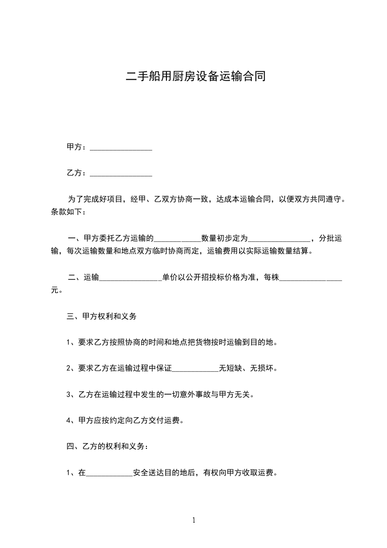 一、甲方委托乙方运输的____________数量初步定为________________,分批运输,每次运输数量和地点双方临时协商而定,运输费用以实际运输数量结算。
