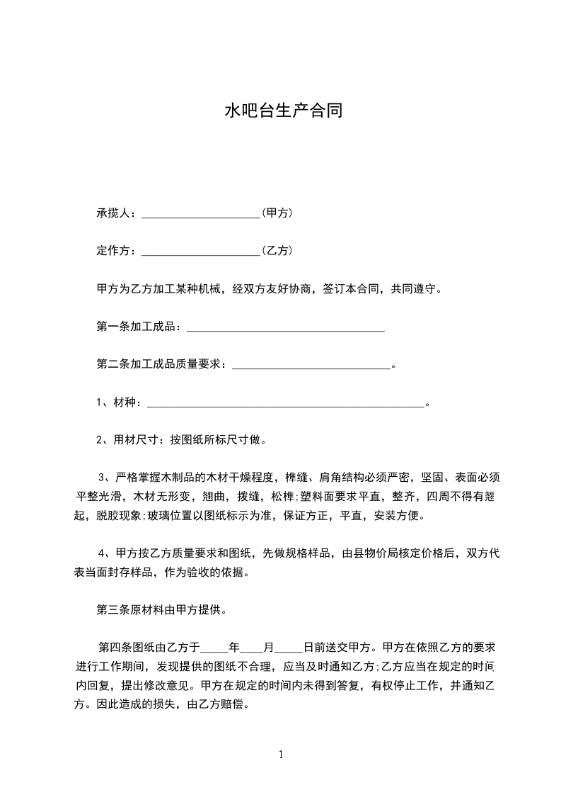 水帘台生产合同