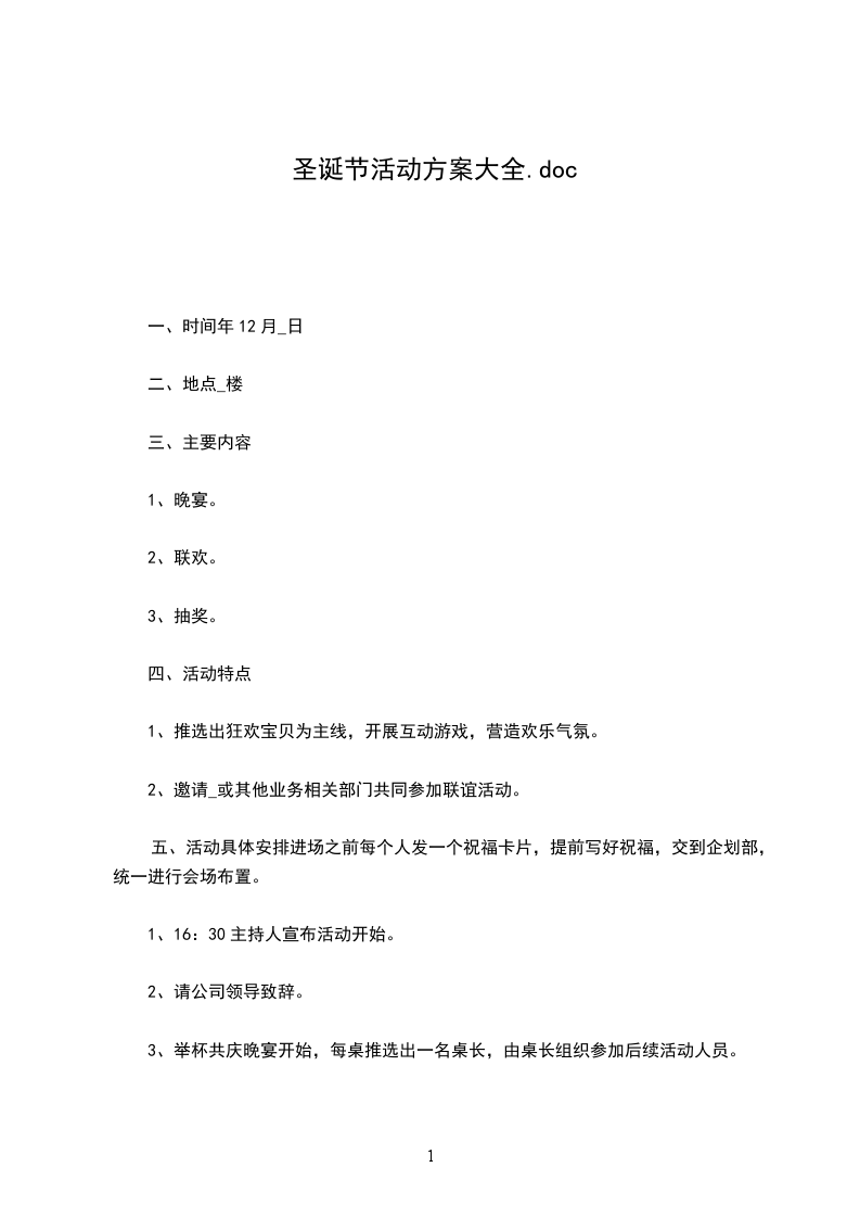 1、活动期间,推出圣诞套餐(标准由餐饮部定)。