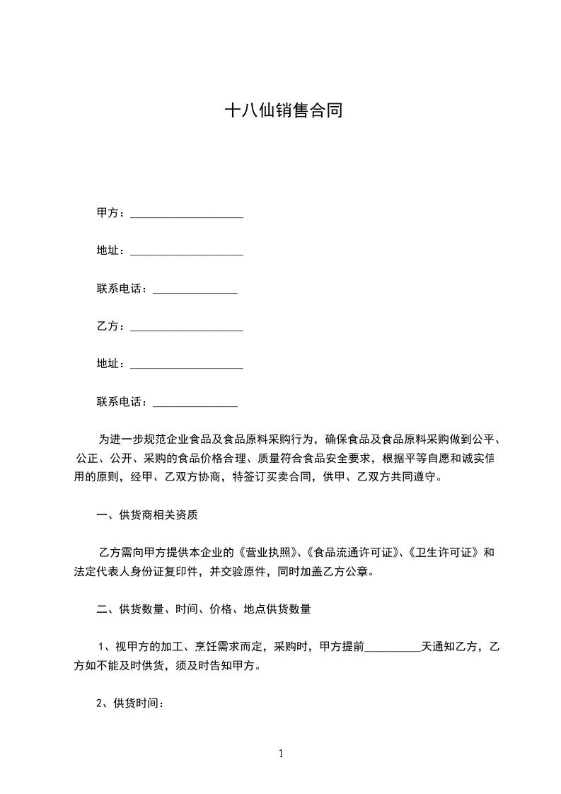 为进一步规范企业食品及食品原料采购行为,确保食品及食品原料采购做到公平、公正、公开、采购的食品价格合理、质量符合食品安全要求,根据平等自愿和诚实信用的原则,经甲、乙双方协商,特签订买卖合同,供甲、乙双方共同遵守。