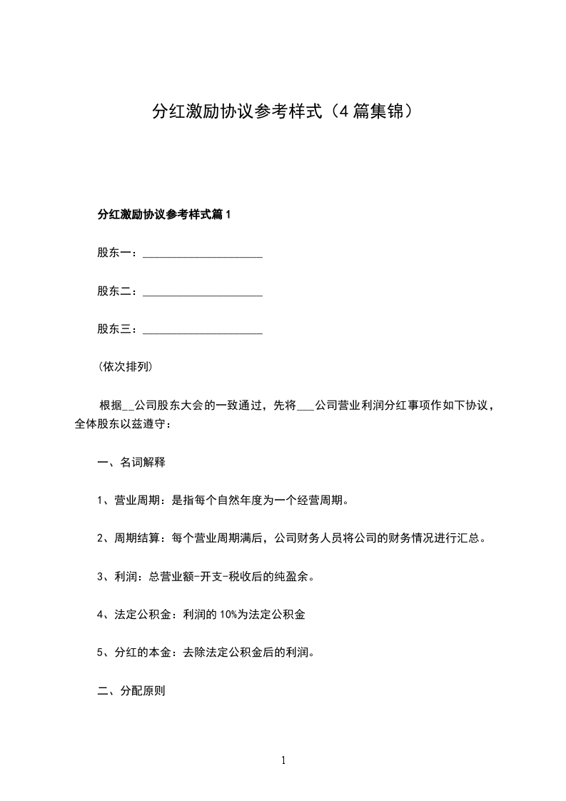 鉴于乙方以往在_____行业的优秀工作业绩,为了激励乙方更好的工作,也为了使甲、乙双方进一步提高经济效益,经甲、乙双方友好协商,本着互惠互利的原则,双方同意甲方以干股的方式对乙方的工作进行奖励和激励。为明确双方的权利义务,特订立以下协议: