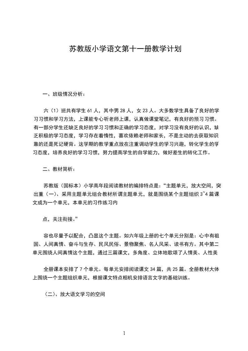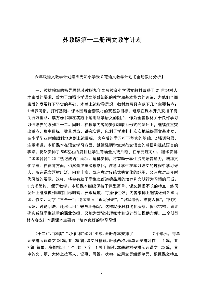 六年级语文教学计划崇杰光彩小学朱X花语文教学计划【全册教材分析】