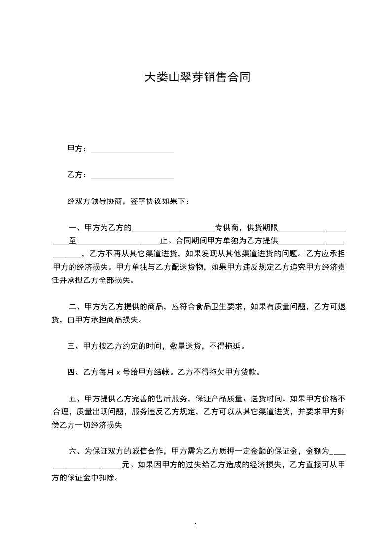 大娄山翠芽销售合同