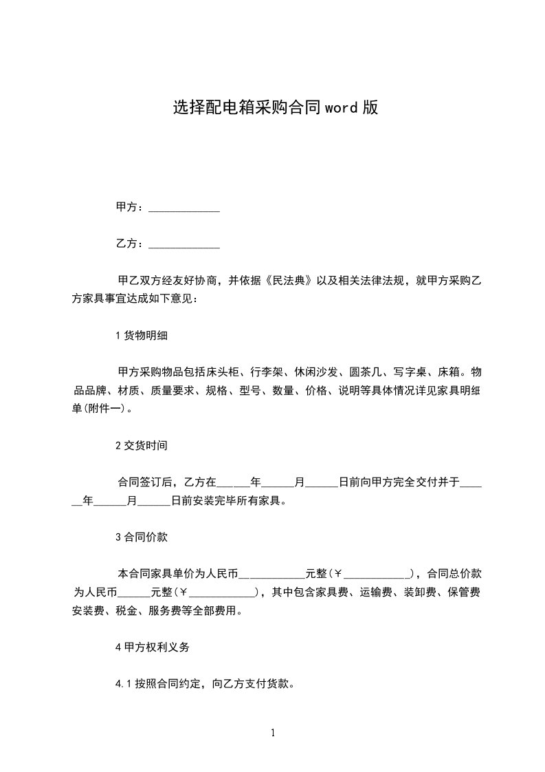 选择配电箱定制合同