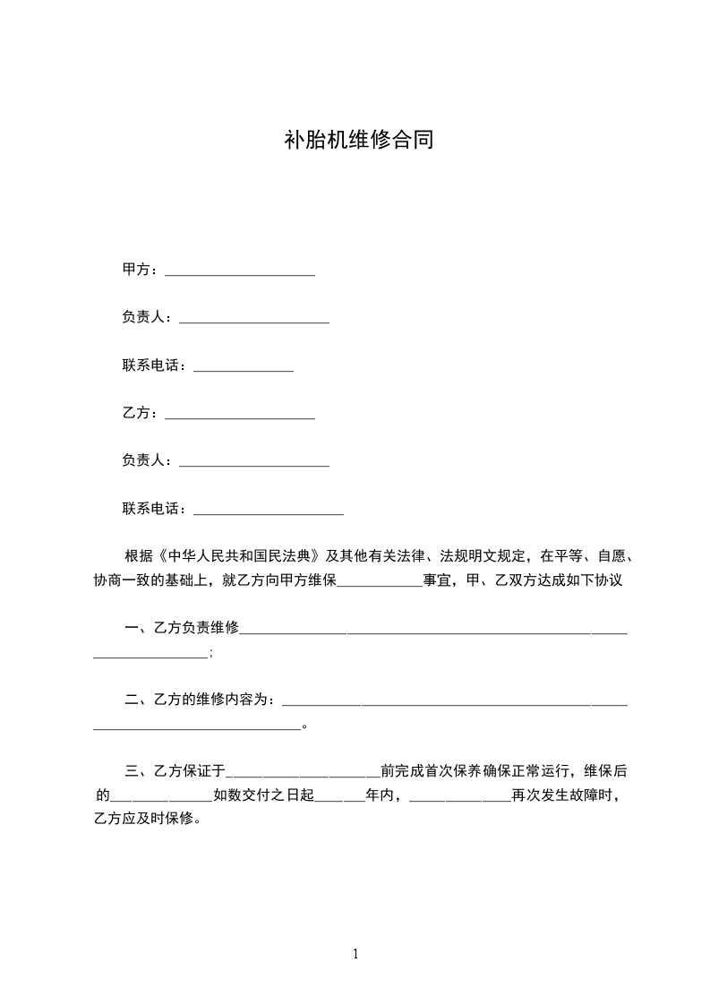 补胎机维修合同