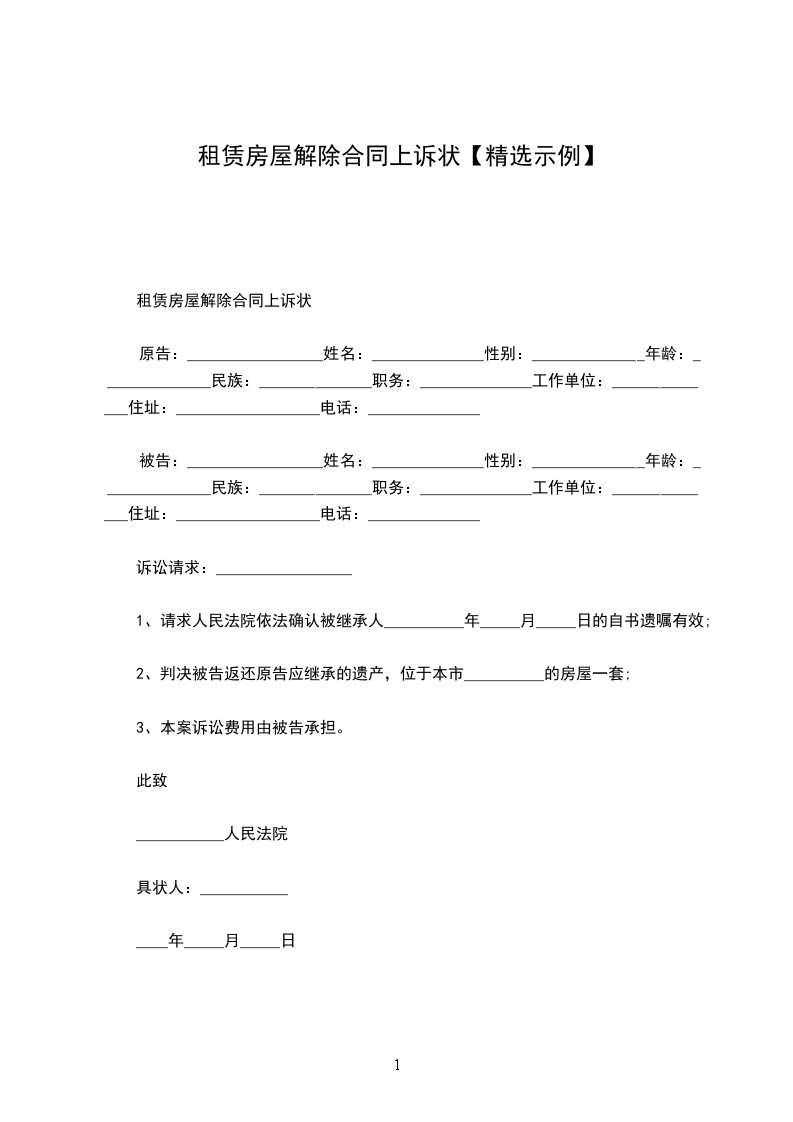 一、解除原、被告于_____________年_____月_____日签订的《__________市商品房预售合同》。
