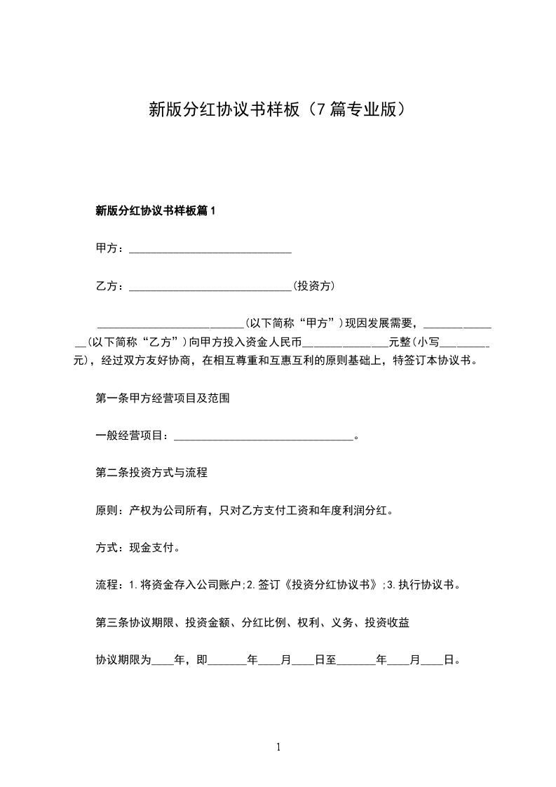 2、协议到期终止后,甲方根据协议期限内的经营情况决定是否签署新的分红协议。
