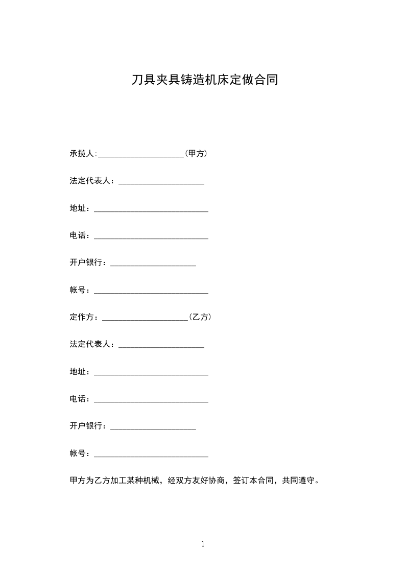 九、生效:本合同一式_______份,共两页,双方各执壹份,经双方签字盖章后立即生效。传真件具同等法律效力。