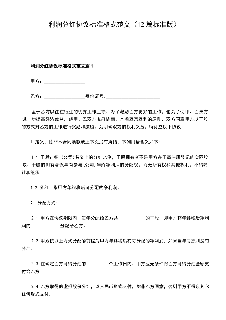2.1 甲方在协议期限内,每年分配给乙方共____________的干股,即甲方将年终税后净利润的_____________分配给乙方。