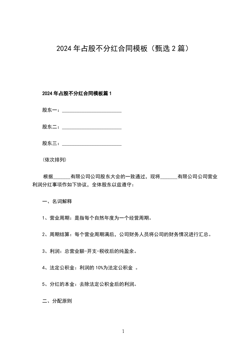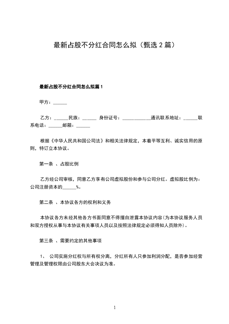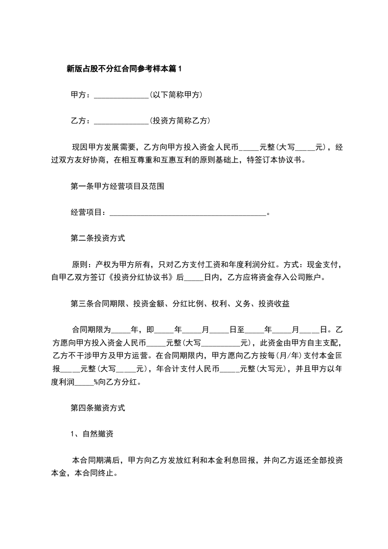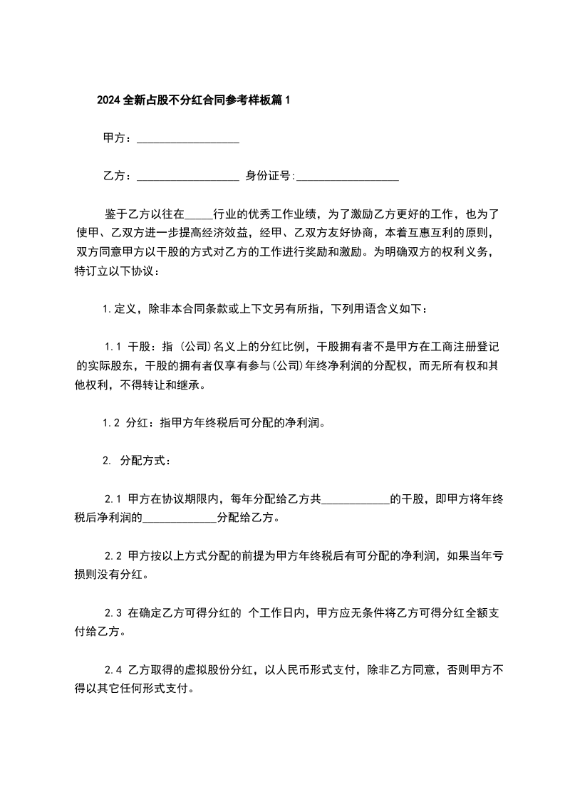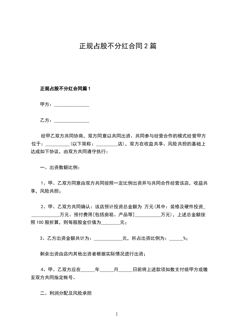 2、乙方所得红利比例为___%(以___税后可分配利润___为基准),通过___方式支付,并视公司的发展以书面形式每______年调整一次;