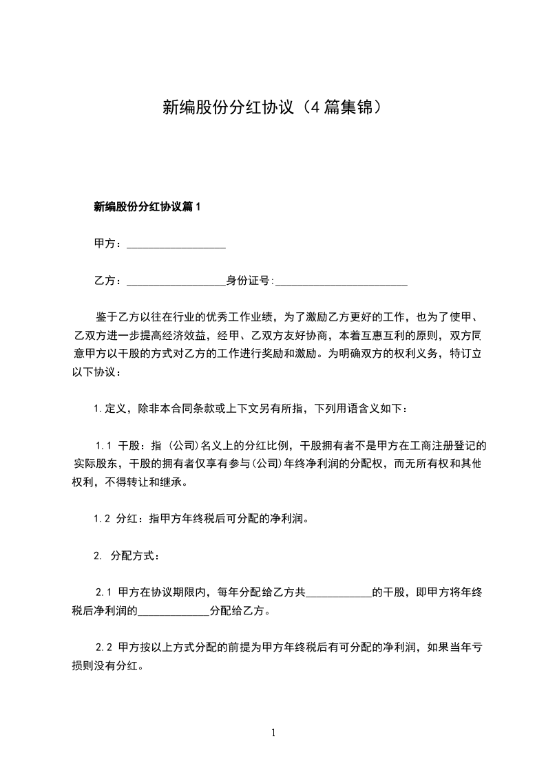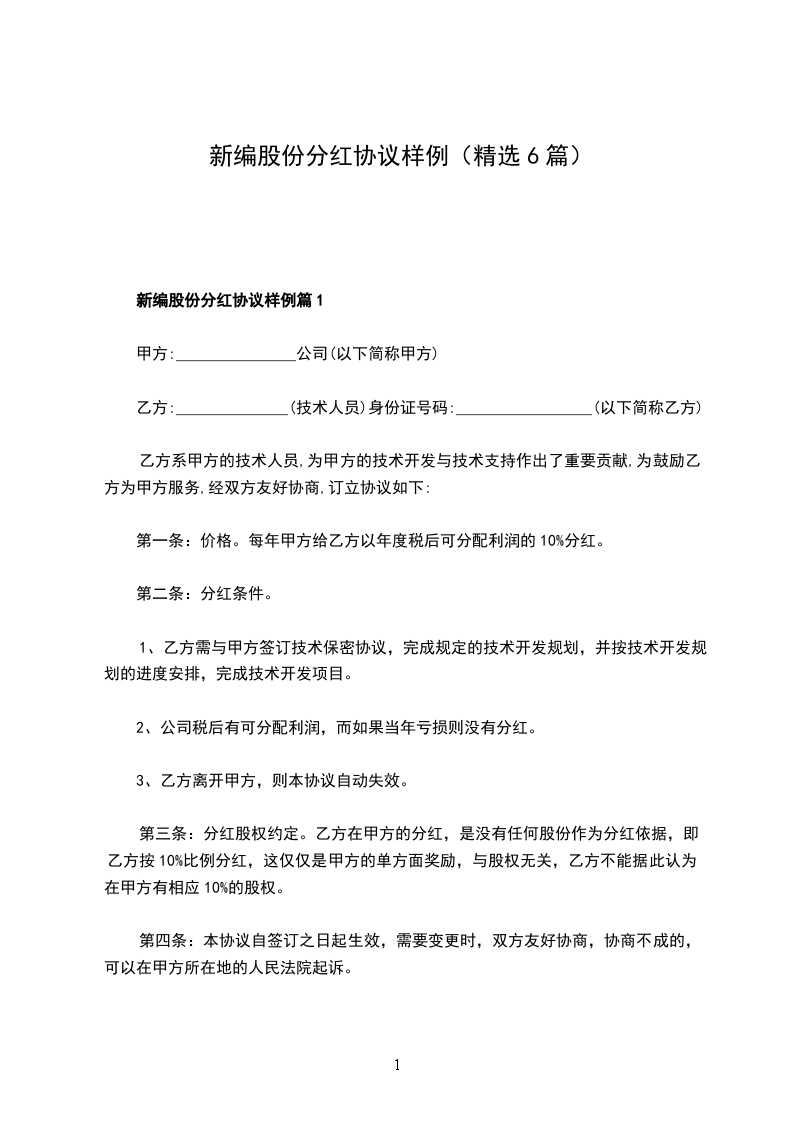 新编股份分红协议样板篇1