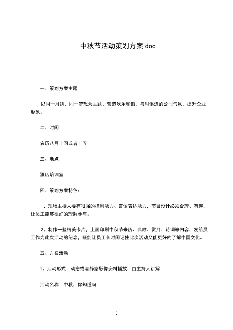 一、活动目的中秋佳节历来是餐厅酒店做促销的大好季节,也是刺激消费者,拉动消费的机会,此次活动一是为了获得更好的利润,另一方面也是为了加强餐厅外在形象,加深餐厅在消费者心目中的印象。