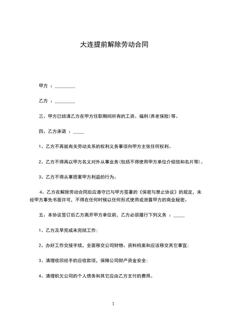 1、自__________年__________月__________日起,解除双方签订的劳动合同,双方的权利义务随之终止;